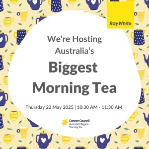 This Thursday, 22 May, the team at Ray White Goulburn will proudly host Australia’s Biggest Morning Tea at our Goulburn office, joining thousands of Australians in raising vital funds for the Cancer Council.